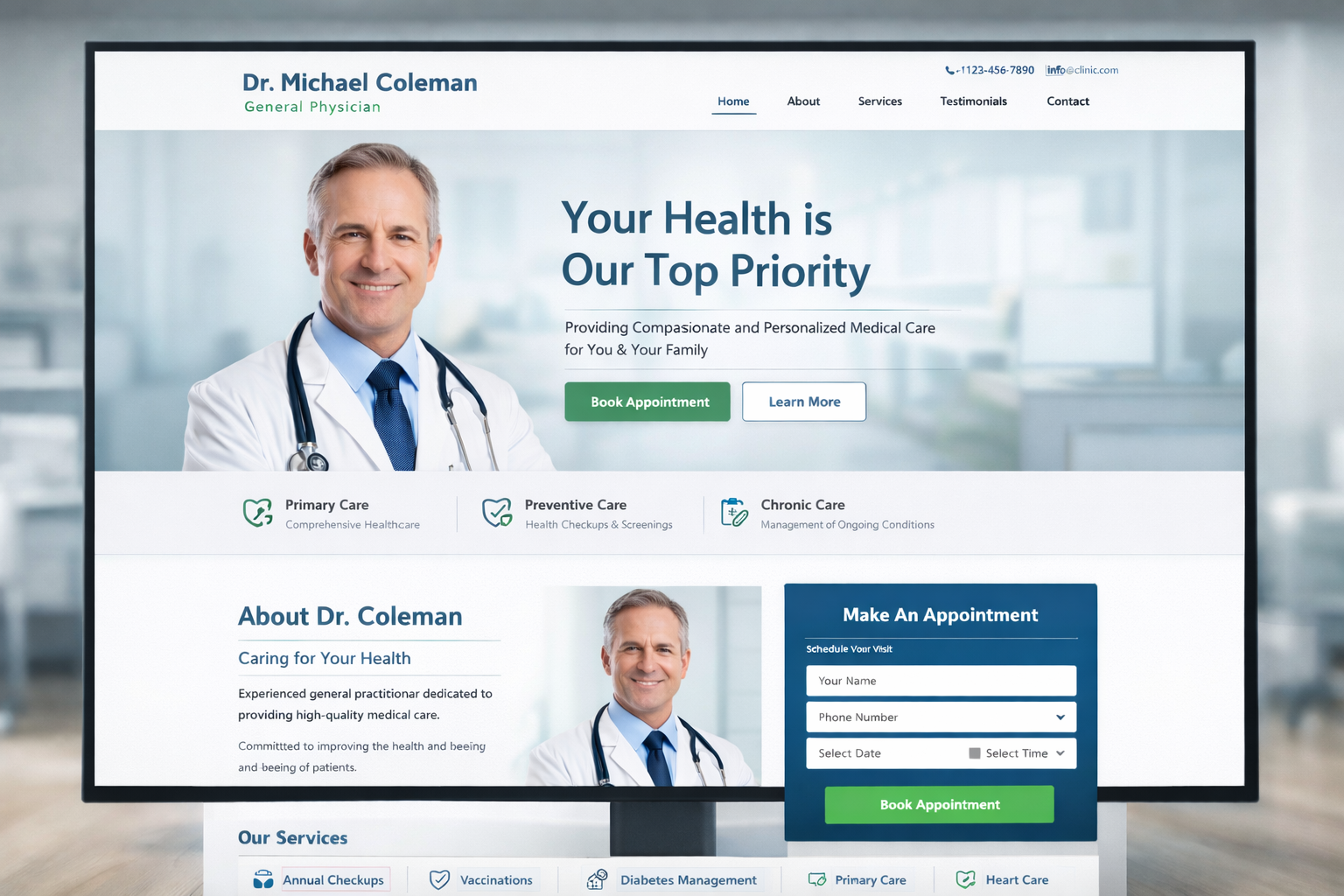 Sample Doctor’s Website Front Pages